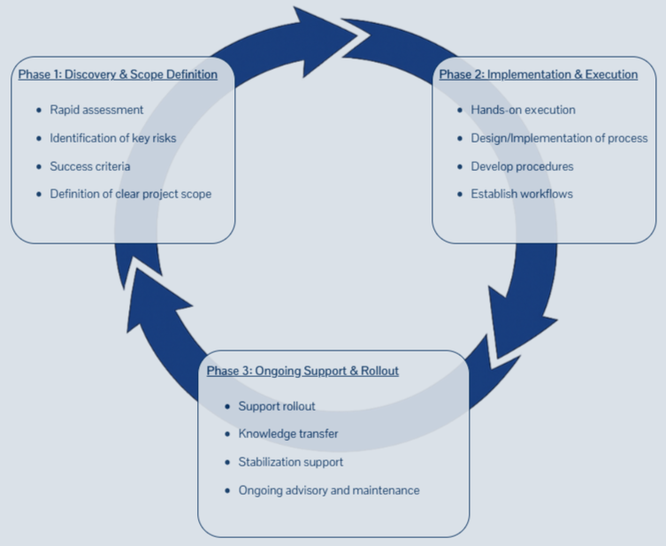 A structured, phased approach to define scope, drive execution, and ensure lasting impact.